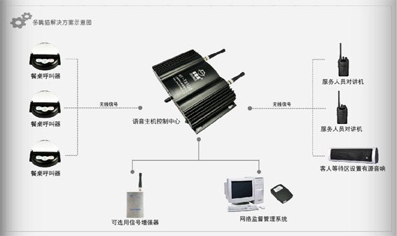 呼叫信息通过语音控制中心转发至服务员随身佩戴的对讲机中,并通过语音形式播报。